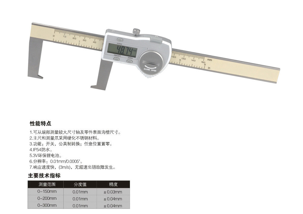 扁头外钩槽数显卡尺